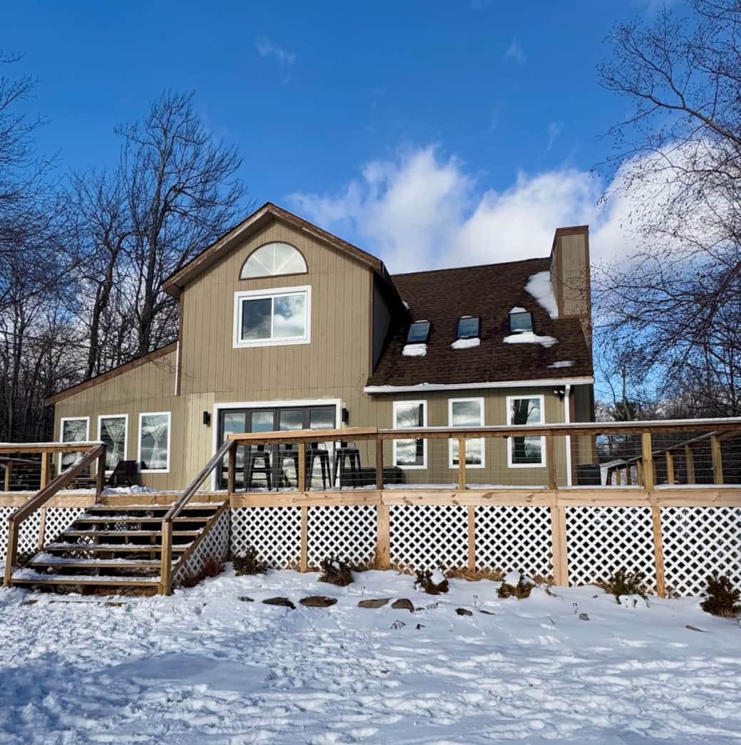Step outside and experience the peaceful mountain setting that makes this one of the most loved Poconos vacation rentals. Our home sits in a quiet lakeside community in Tobyhanna, surrounded by tall trees, nature trails, and the calm beauty of the Pocono Mountains — the perfect backdrop for your family getaway or ski weekend.